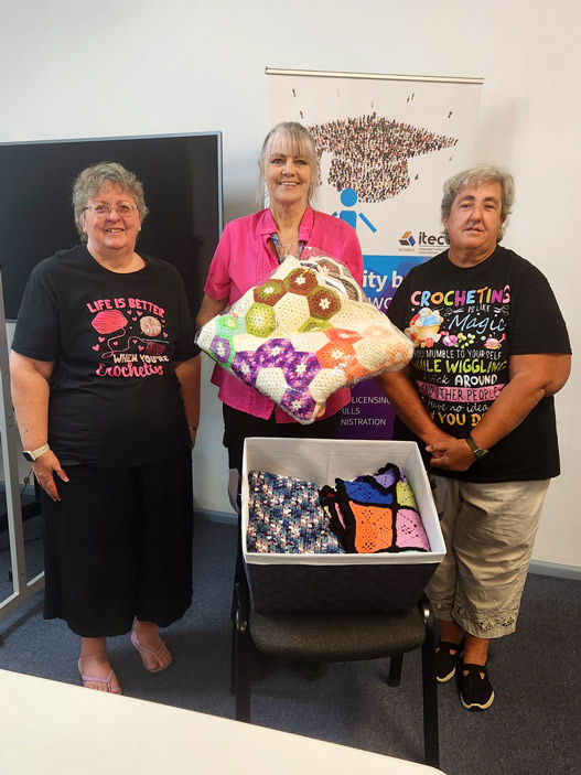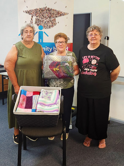 This week at Community College Northern Inland’s Gunnedah Campus, the social crochet group welcomed representatives from local care facilities to a morning tea and special presentation event.